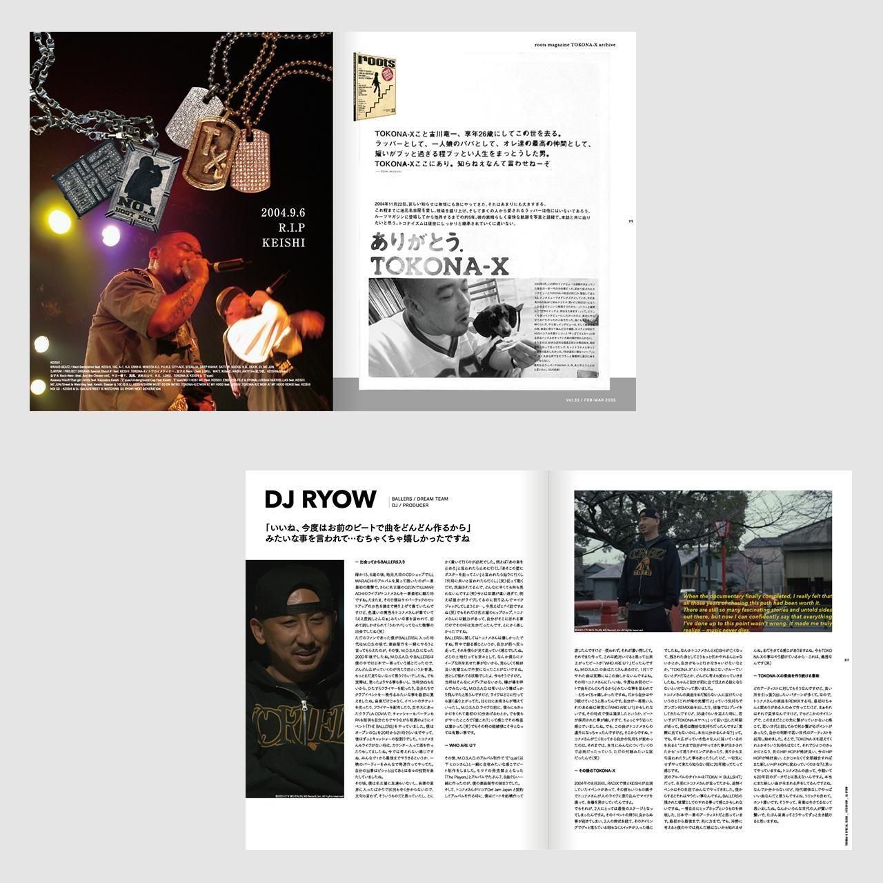 日本のヒップホップ史にその名が刻まれた伝説のラッパーに迫る「TOKONA-X大図鑑」。さらに、「roots magazine」にかつて掲載されたTOKONA-Xのインタヴューや、イベントレポートなど年代を追ってアーカイブ。
